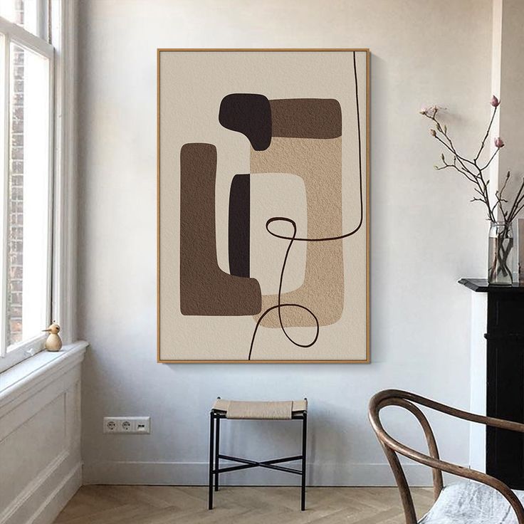 This captivating abstract canvas painting features soft curves and earthy tones in shades of brown, beige, and cream. The organic forms and smooth lines evoke a sense of serenity and elegance, making it an ideal choice for modern interiors. The fluid movement of the lines contrasts beautifully with the geometric shapes, creating a balance of chaos and calm. This hand-painted canvas artwork is perfect for enhancing contemporary spaces, adding a sophisticated and minimalistic touch to living rooms, lounges, or bedrooms. Whether you’re looking to buy canvas paintings for your home or office, this piece is sure to elevate any modern decor.