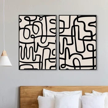 Add a touch of modern sophistication with this black and white abstract canvas painting set, featuring intricate maze-like lines that create depth and movement. Perfect for minimalist, contemporary, and modern interiors, this artwork adds an artistic edge to any space. Available as canvas painting, canvas prints, and digital canvas prints with brush strokes, it's an ideal choice for those looking to buy abstract canvas painting that blends creativity with elegance.