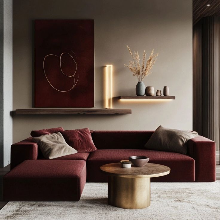 The Crimson Line Canvas Painting showcases delicate gold strokes drawn across a rich burgundy background, creating a striking interplay between minimal form and bold color. Ideal for modern decor, this canvas painting enhances any contemporary or minimalistic interior with its elegant simplicity. A perfect choice for anyone looking to buy canvas painting art that adds subtle luxury and abstract sophistication to their space.