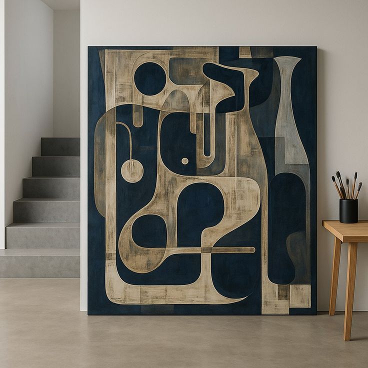 Formscape Canvas Painting blends abstract human-like and organic forms in earthy tan and deep navy tones. The textured, layered strokes create a captivating visual rhythm, making it an ideal choice for modern interiors with a bold, artistic edge. It adds warmth, sophistication, and intrigue to both minimalist and expressive spaces. This canvas painting serves as a striking centerpiece for living rooms, offices, or creative corners. A refined choice to buy canvas painting that harmonizes structure and fluidity in contemporary modern decor.