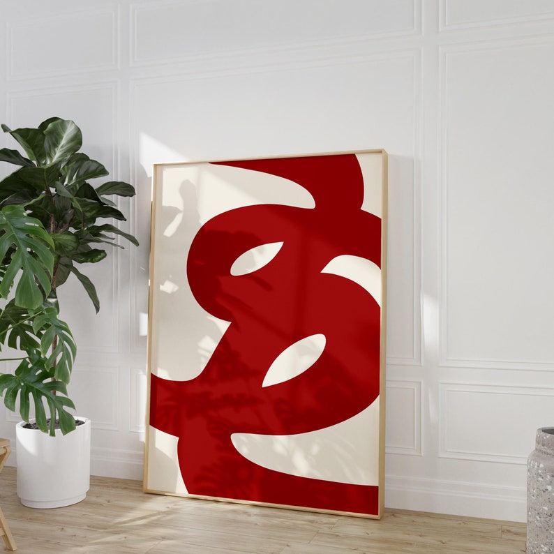 This striking canvas painting features bold, swirling red shapes against a clean, neutral backdrop. The fluid curves create a dynamic sense of movement and energy, while the deep red tones add a touch of intensity and warmth. The minimalist design, combined with the bold use of color, makes this piece a perfect fit for modern and contemporary interiors. Whether displayed in a living room, bedroom, or office, this artwork brings both elegance and excitement to any space. Available as digital prints and hand-painted canvas, this piece is ideal for those seeking to add a modern and artistic touch to their decor.