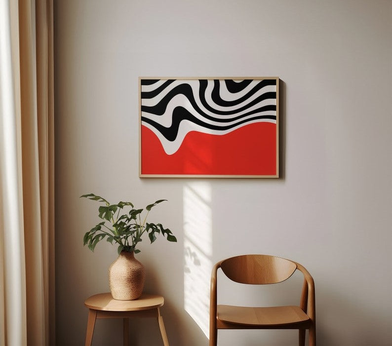 This Monochrome Wave Canvas Painting showcases flowing, dynamic lines in black and white that create an energetic sense of movement. The bold waves contrast beautifully against a neutral background, making it a striking piece for any contemporary interior. The minimalist yet captivating design adds depth and interest to your space, perfect for living rooms, offices, or bedrooms. Available as both a hand-painted canvas and digital print, this artwork will elevate the modern aesthetic of any room with its clean, bold lines. Buy canvas painting to transform your space with this stylish and vibrant black and white masterpiece.