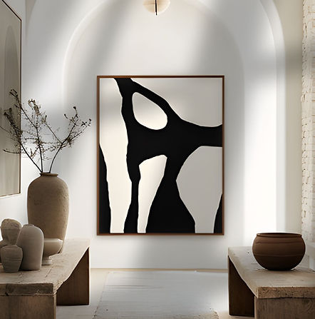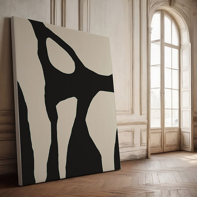 This stunning abstract canvas painting features a harmonious blend of bold black shapes and soft white spaces. The flowing organic forms create a sense of movement, drawing the eye across the piece. Its minimalist design, paired with the striking contrast between dark and light tones, makes it the perfect addition to any modern, chic interior. Ideal for living rooms, bedrooms, or offices, this artwork adds sophistication and elegance to your space. Available as digital prints and hand-painted canvas, this piece brings a contemporary, artistic touch to your decor, offering a balance of simplicity and visual interest.