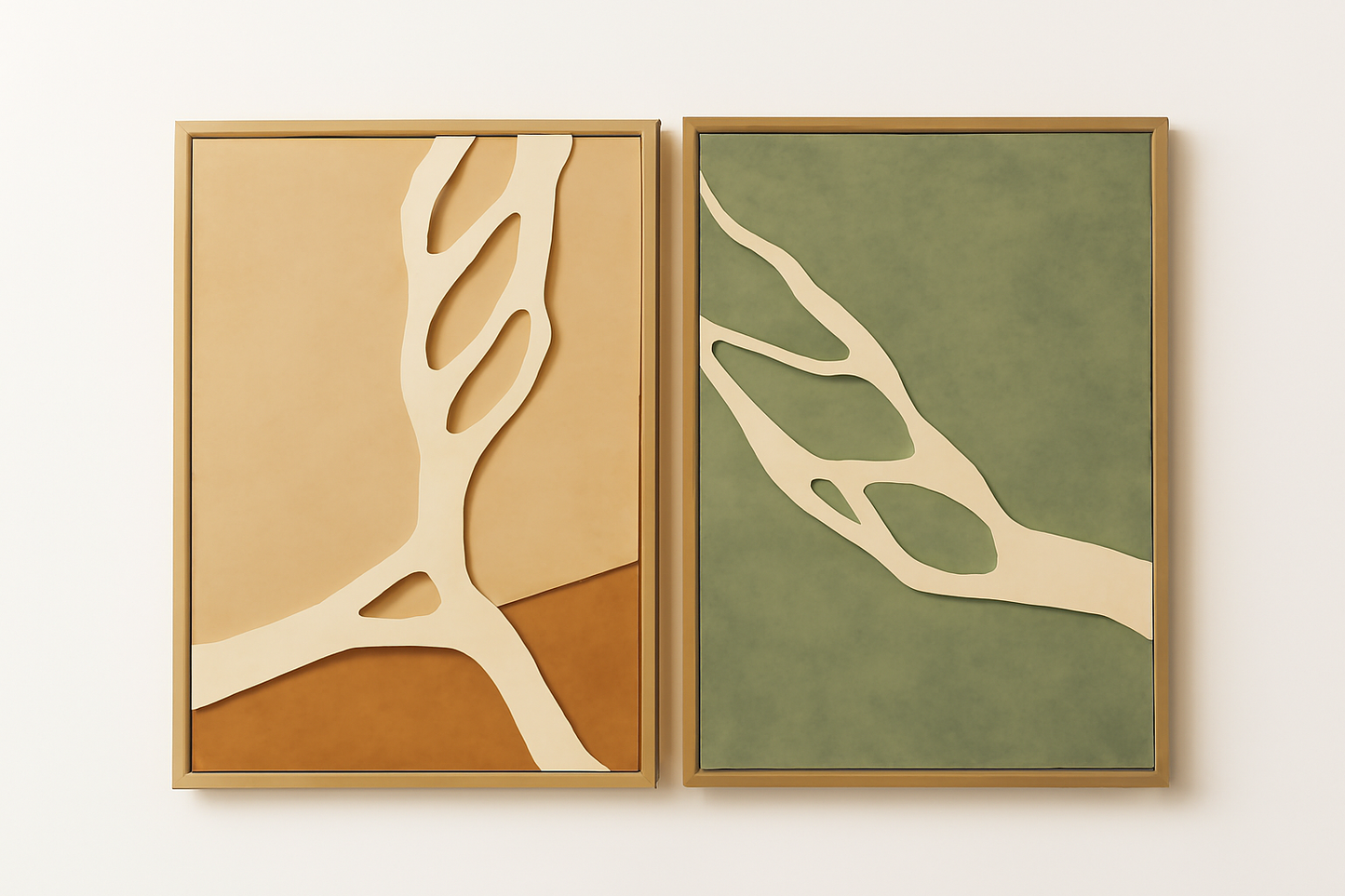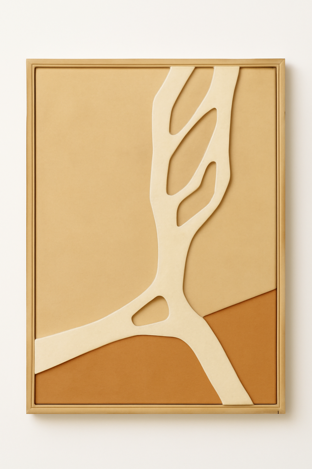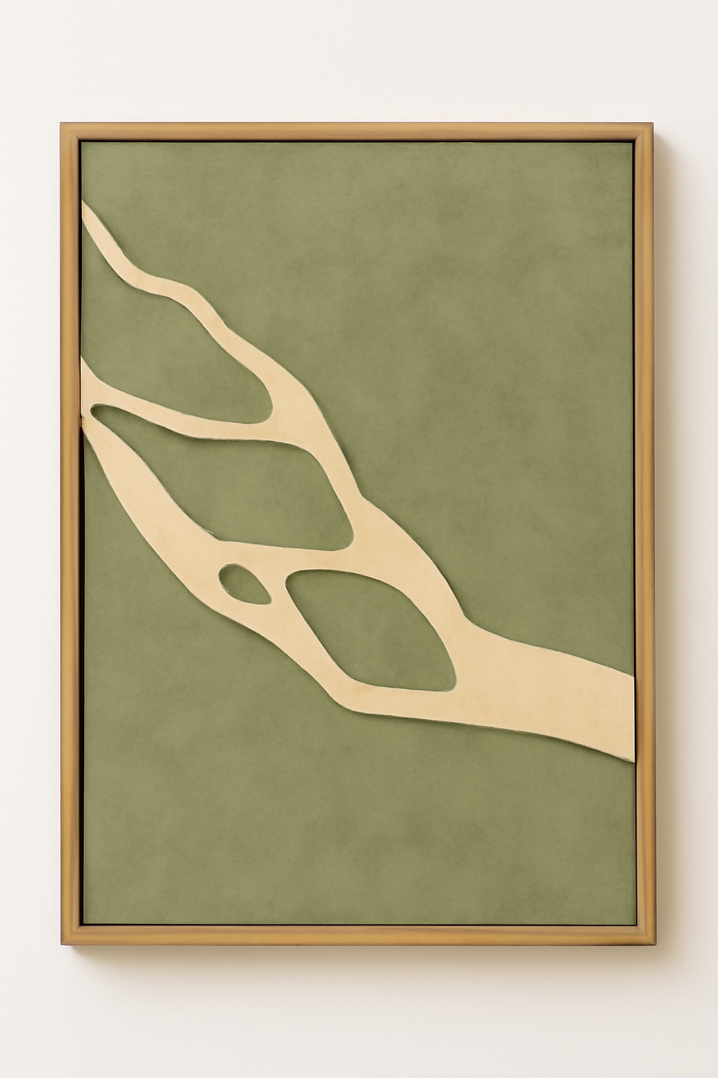 The Organic Branch 3D Wall Sculpture offers a stunning wall relief design featuring smooth, off-white branching forms that contrast beautifully against the textured olive green background. This handcrafted 3D wall sculpture is framed in light natural wood, highlighting the minimalist yet organic design. Its subtle depth and clean lines create a captivating effect, perfect for enhancing modern interiors. Ideal for adding dimension to living rooms, offices, or galleries, this wall sculpture provides a sophisticated and calming touch to any space. Turnaround time: 10-14 working days.