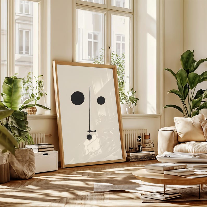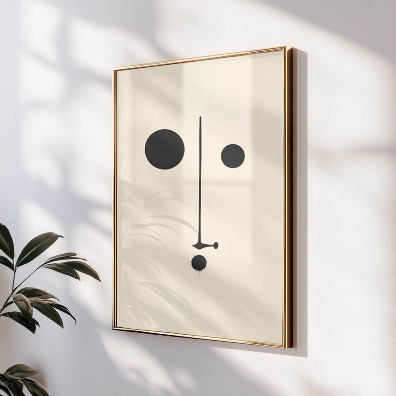 This Simple Portrait Canvas Painting features a striking, simplistic design with two black circles representing eyes and a thin black line as the nose, set against a soft, neutral background. The abstract, minimalistic approach evokes a sense of curiosity and elegance, making it a perfect addition to modern or contemporary interiors. The clean lines and sparse use of color add depth and personality to any space, making it ideal for living rooms, bedrooms, or offices. Available as both a hand-painted canvas and digital print, this artwork offers a unique and minimalist aesthetic that complements modern decor. Buy canvas painting to infuse your space with an artful, contemporary touch.